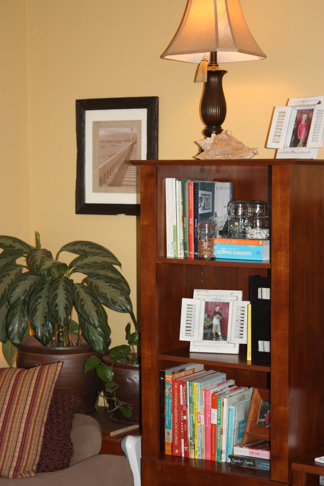 So far, I’m liking the changes. Funny thing, my hubby didn’t even notice that I totally changed things around. I’m wondering how long it will be before he says, “Hey, where’d those baskets go and where did those books and pictures come from?” I don’t think he really cares about decorating and how I arrange our books. What do you think?