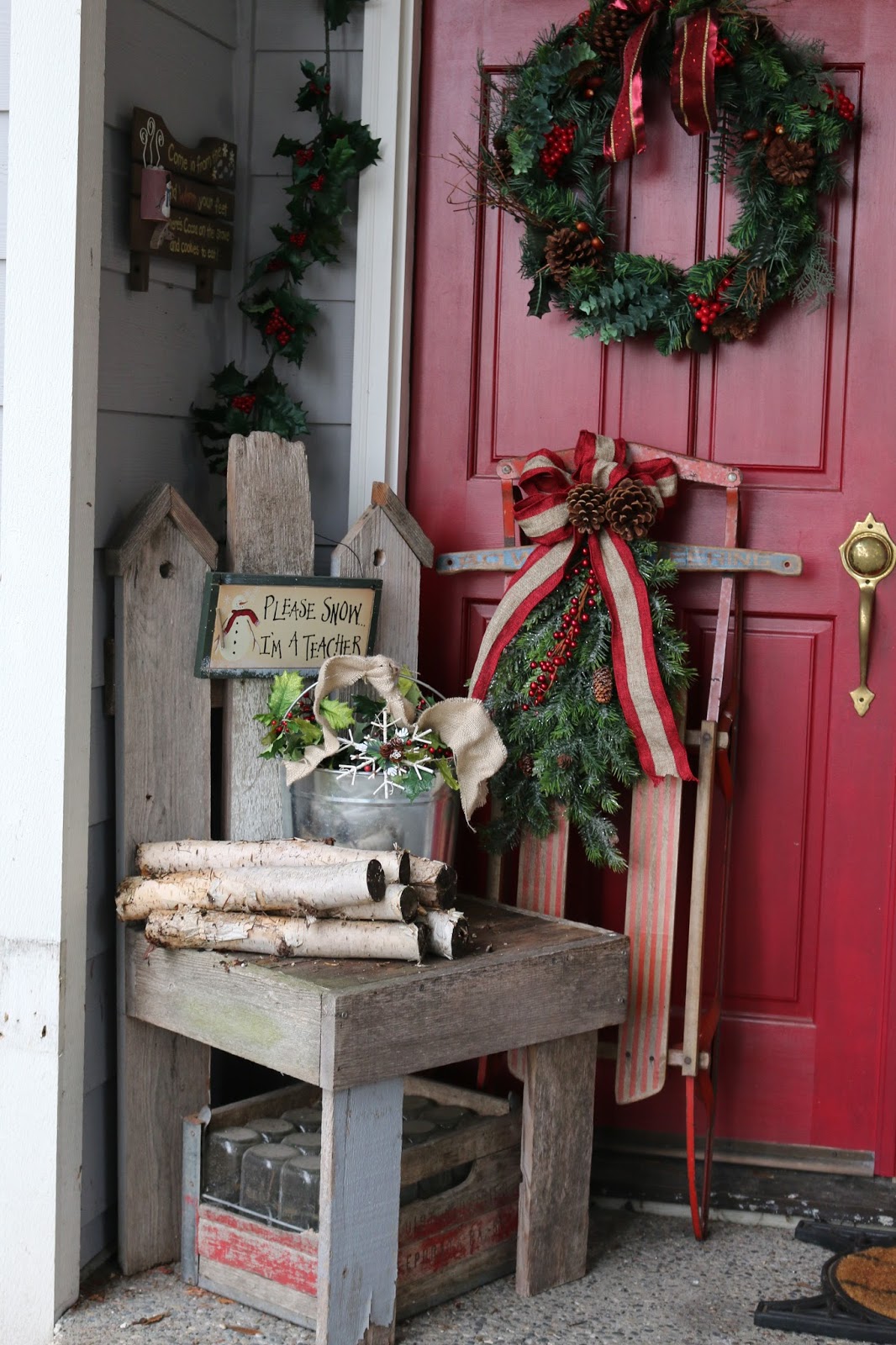 I cute sign, a bucket of holly, and some birch logs from the deck are all it takes to make my chair kind of cute!