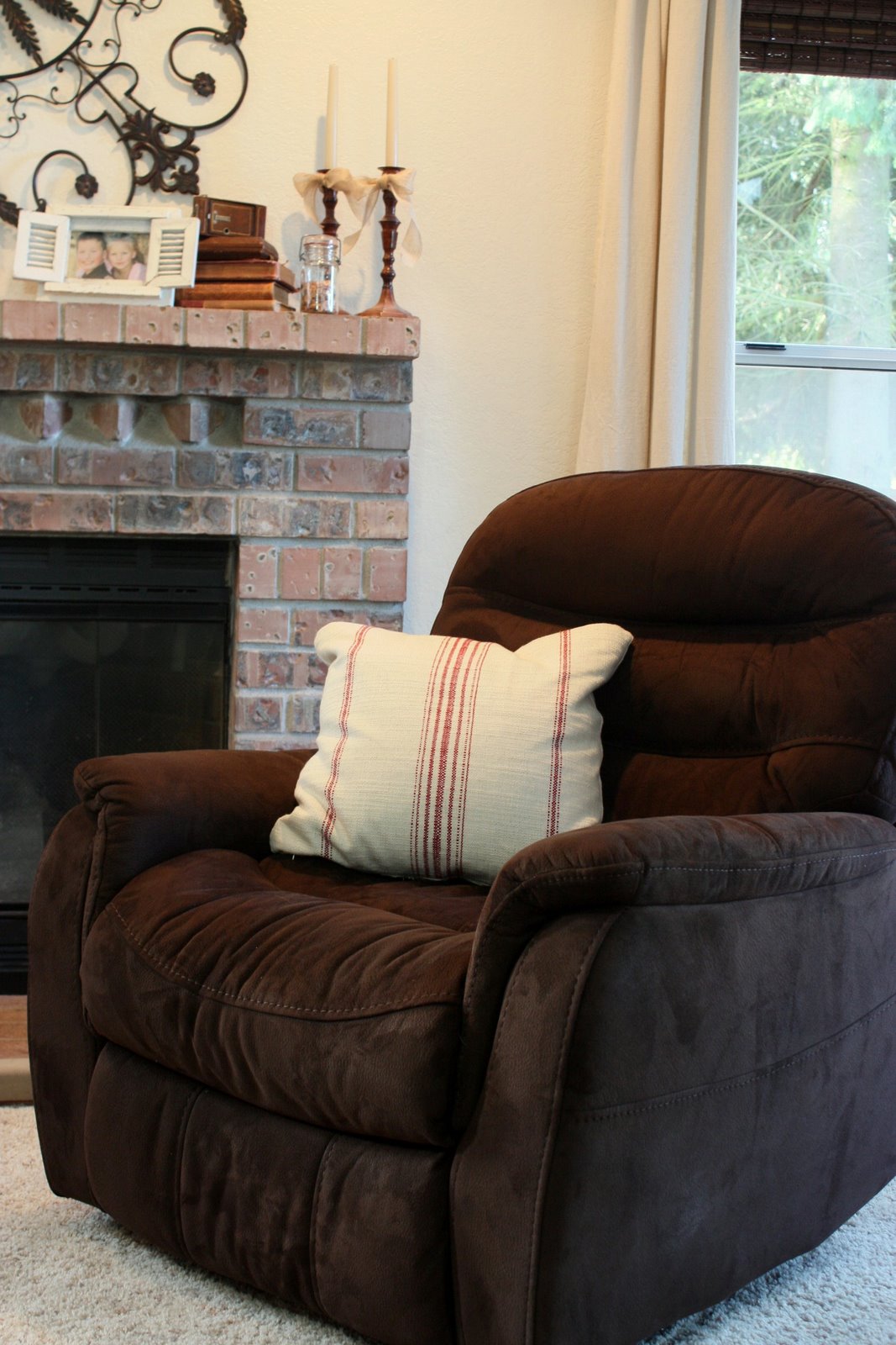 I really like your new couch and the pillows you chose for it. The story of "sparky" is too bizarre! I've never thought about a chair catching on fire at all, so I'm glad you got a new one! (It does look rather comfy!)
