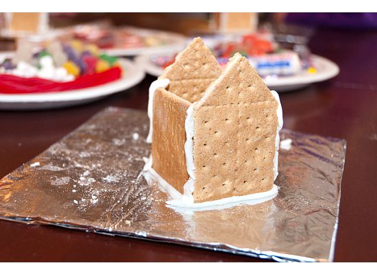 When the kids were little, I prepared the house bases ahead of time, so all they had to do was add the roof and candy. I still prepare the houses ahead of time for Kindergarten. (Actually, my parent volunteers prepare them.) Since my kids at home are bigger, we just build and create! Sometimes the candy houses turn into candy fortresses.