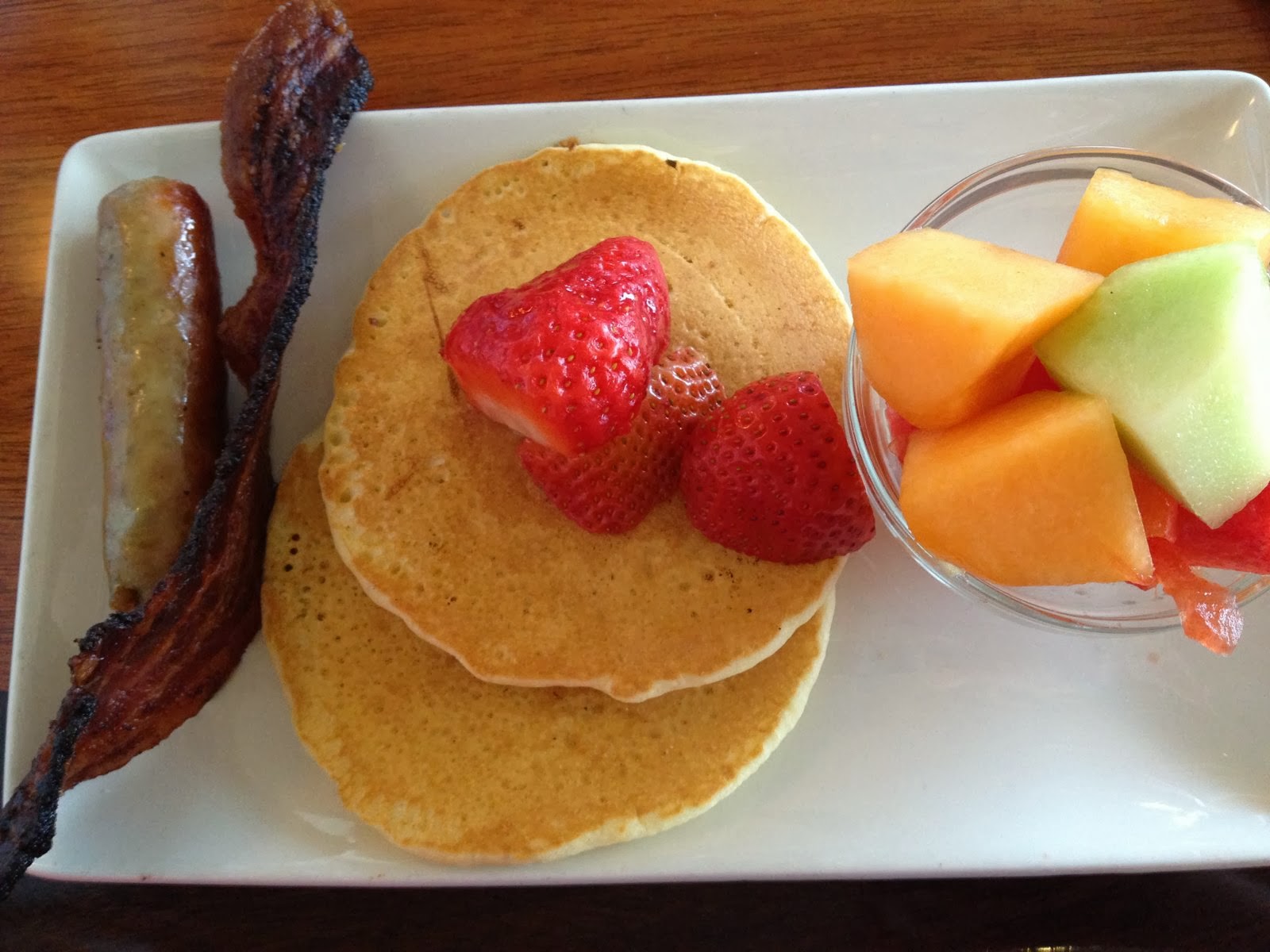 The huckleberry pancakes weren’t anything special. Actually, they had kind of a chemically flavor to them. If I had been anywhere else, I probably would have sent them back, but I’ve never eaten at a restaurant where they serve your orange juice in a champagne glass and place your cloth napkin on your lap for you.