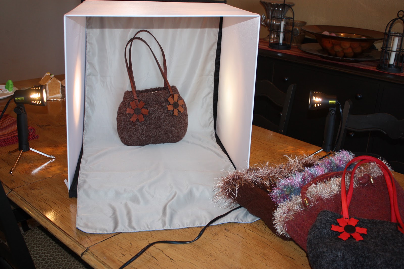 I’ve also been playing around with my new photography toy. It’s a light box with lamps. My mom is starting an Etsy shop with BEAUTIFUL wool, felted, handbags. I have a boat load of them to photograph and post in her Etsy shop.