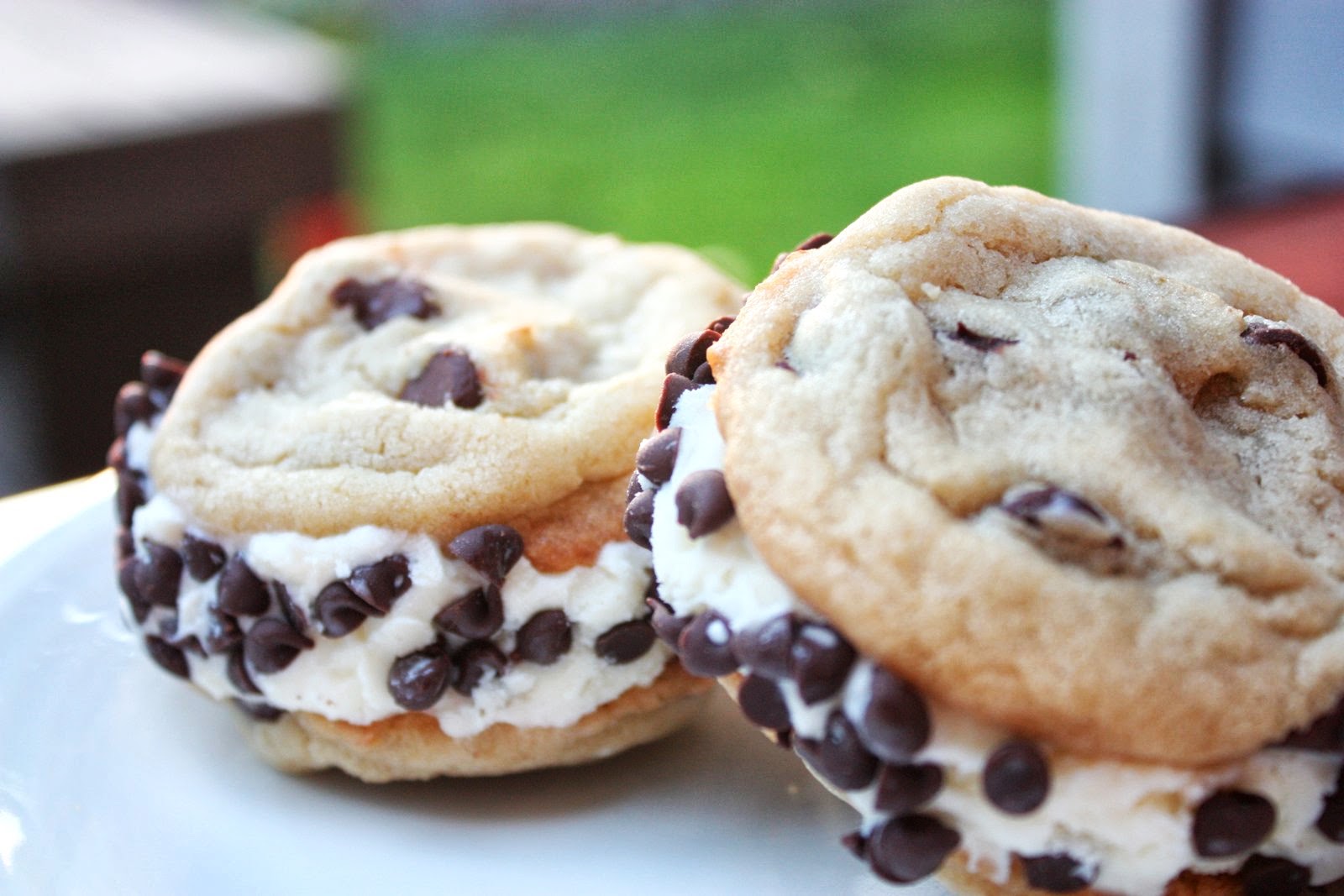 Homemade chocolate chip cookies, with homemade ice cream sandwiched in between, rolled in mini chocolate chips…. does it get any better than that?