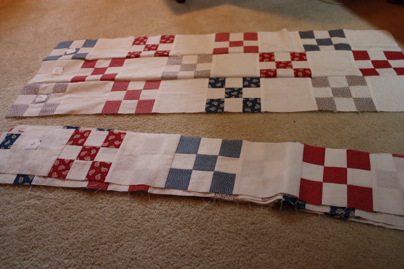 After sewing the blocks, I assembled them into strips.