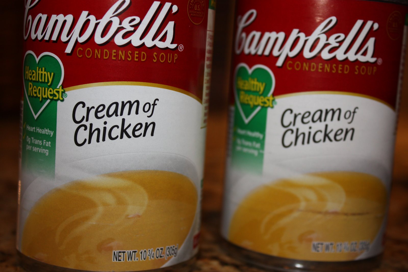 The recipe starts with Cream of Chicken soup. I made a double recipe, which is why I have two cans.