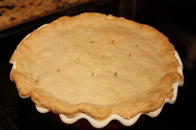 I like to use a pie shield when I make chicken pot pie. It bakes for 40 minutes in a 400 degree oven. Without the pie shield,the edges get overly brown.