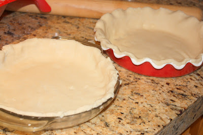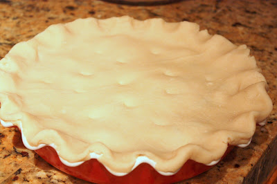 I love homemade pie crust. I use the recipe that comes on the Crisco can. If you are not a fan of making pie crust, the store bought pie crust works well too. I’ve tried that, but don’t really like the texture. Make enough pie dough for the crust and top. Like I said, I made two pies. One was for dinner and one was for the freezer.