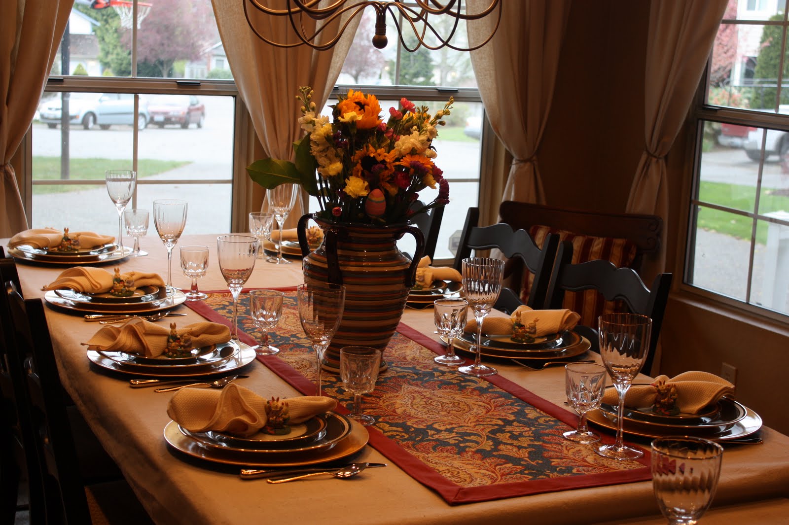 I needed to change my accessories too. I made a new table runner to add a different feel to the room. I already had a big urn that matched the runner. I also recovered a chair in the dining room with the same fabric.