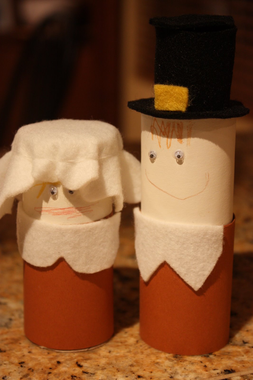 We needed some craft projects so we wouldn’t go crazy. My youngest tried making a few toilet paper rolls into Pilgrims. I think she did a pretty good job! I tried suggesting more hair for the Pilgrims, but no luck for them.