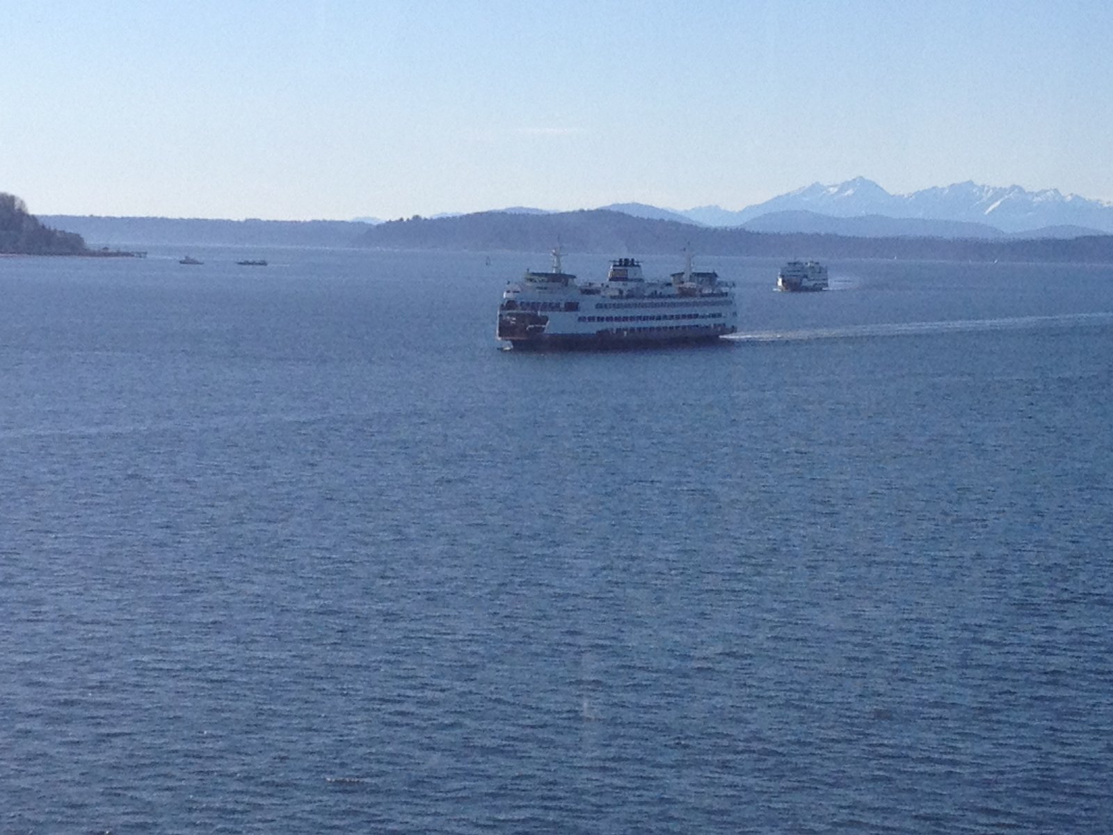 We woke up Friday morning to SUNSHINE AND BLUE SKIES! That’s absolutely unheard of for Seattle in February. We couldn’t just sit around inside all day, so I decided to take the kids to the Big City. I really don’t like driving to Seattle, but occasionally I will venture down to the zoo or the aquarium. The new ferris wheel is right by the aquarium, so I figured I could manage.