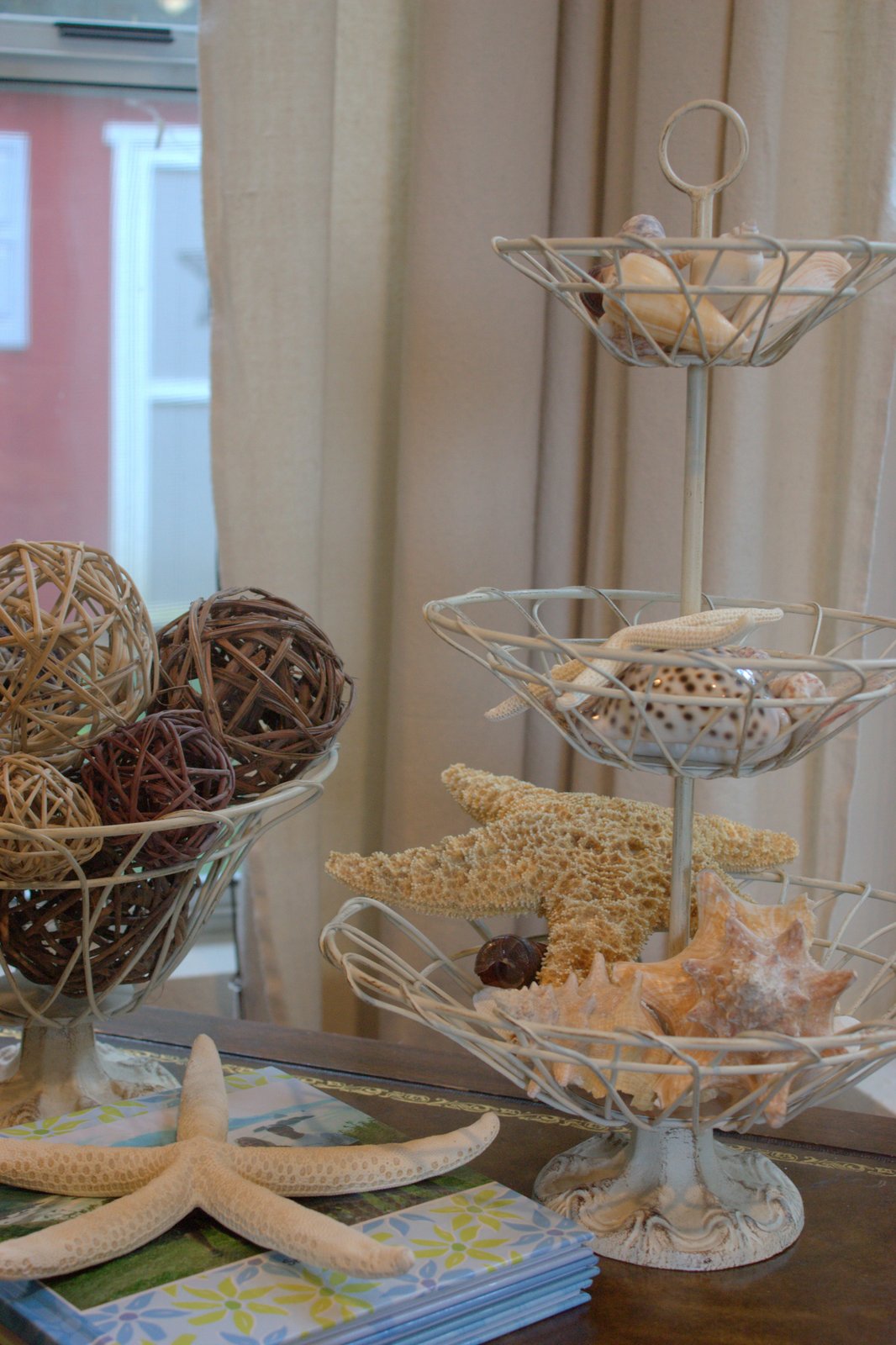Then, I moved onto other parts of the family room. I filled my wire basket with shells and pulled out a few of my Seaside photo books.